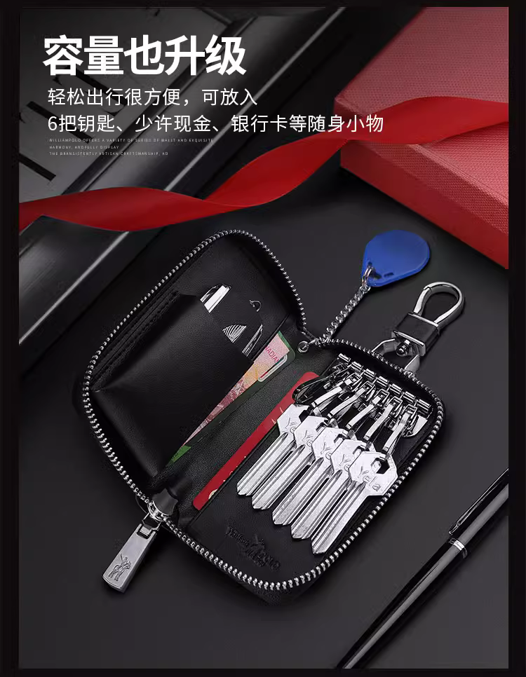 保罗新款钥匙包男士真皮大容量多功能一体包汽车拉链包腰挂锁匙包