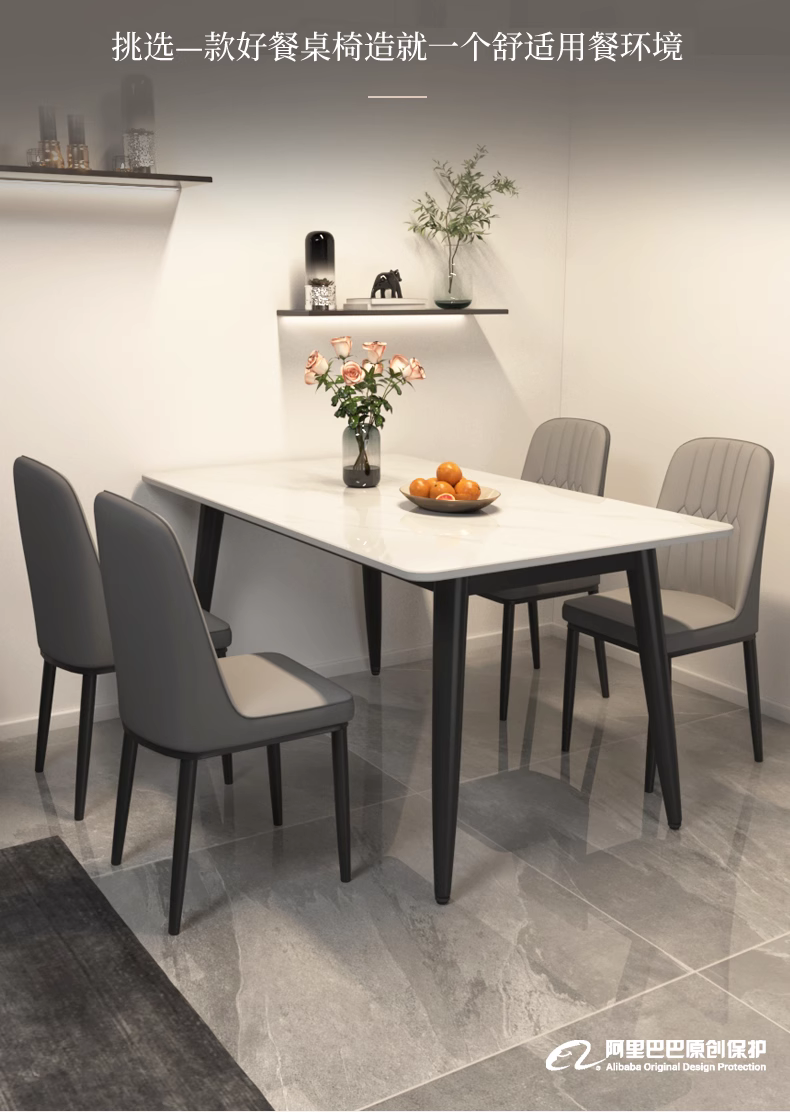 岩板餐桌椅组合家用小户型哑光加厚饭桌现代简约轻奢亮面亮光桌子