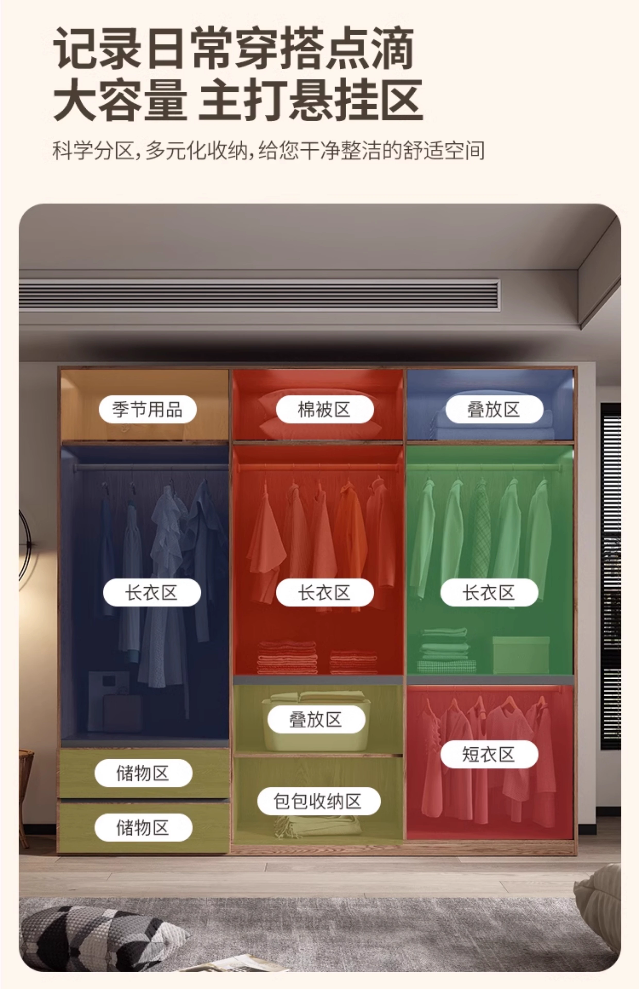 衣柜家用平开门成人简约现代组合经济型上下抽屉柜实木储物大衣橱