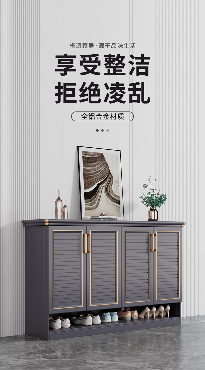 轻奢全铝合金鞋柜家用别墅门口室外防水防晒定制门口大容量储物柜全铝轻奢灰140*36*100 三门 免安装