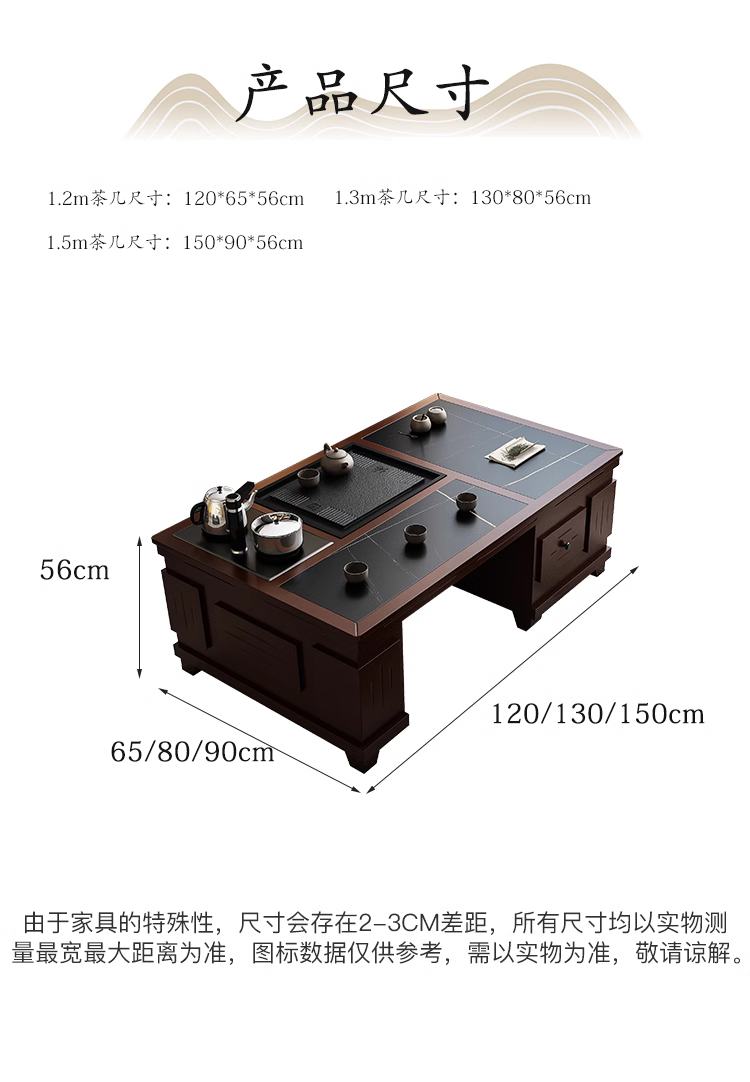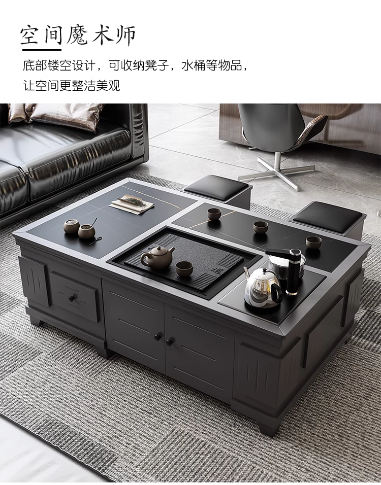功夫茶几带烧水壶火烧石茶桌椅茶具套装一体现代家用办公室泡茶台 150*90