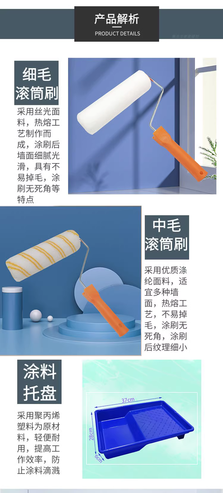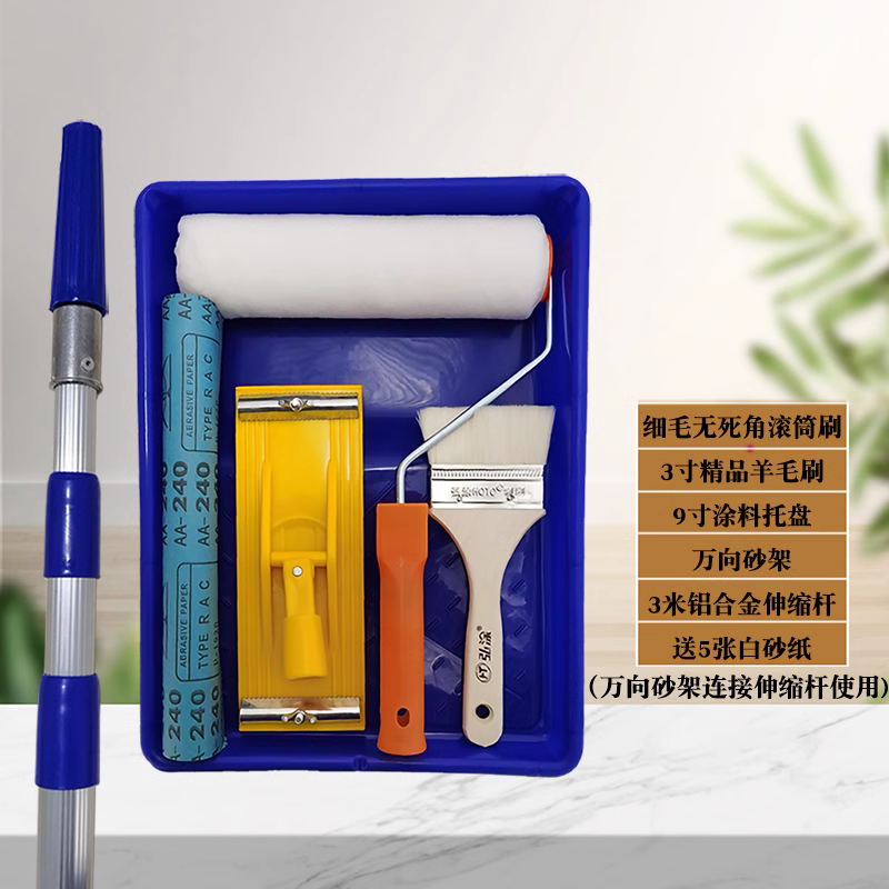 9寸滚筒刷伸缩杆涂料托盘万向砂架滚筒刷套装羊毛刷油漆乳胶漆刷