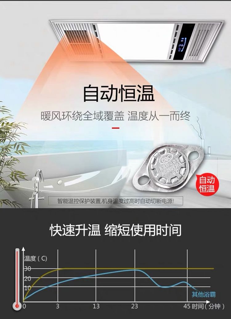 风暖浴霸集成吊顶30*60排气照明一体卫生间五合一吸顶led灯暖风机
