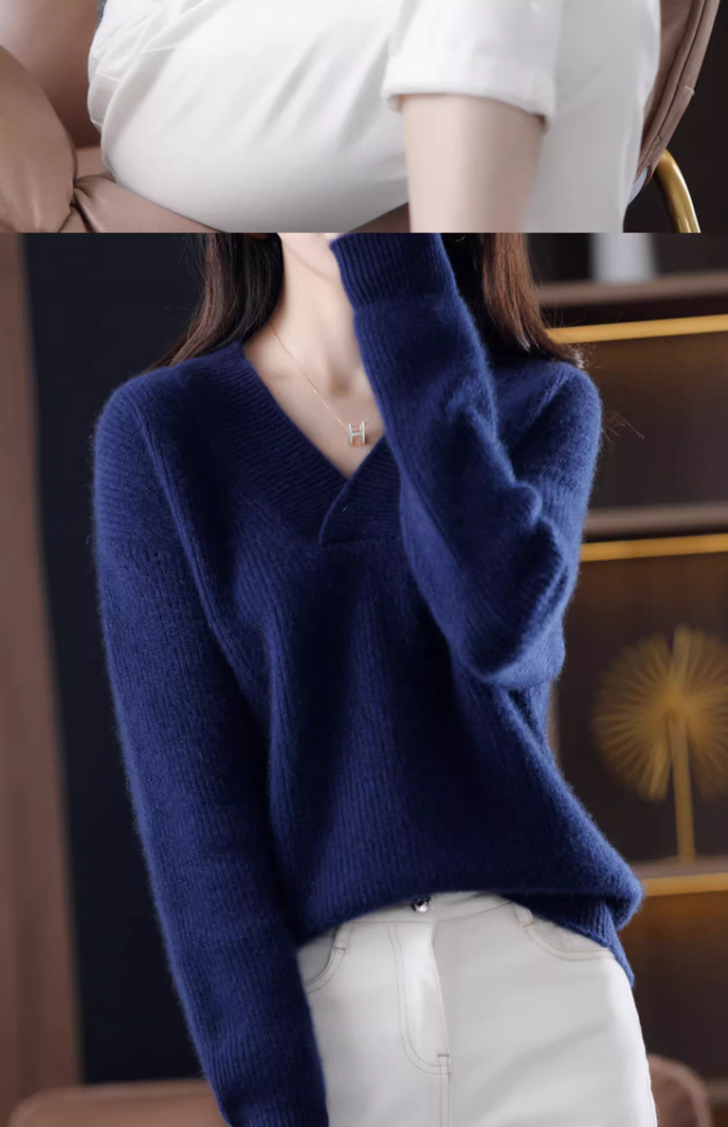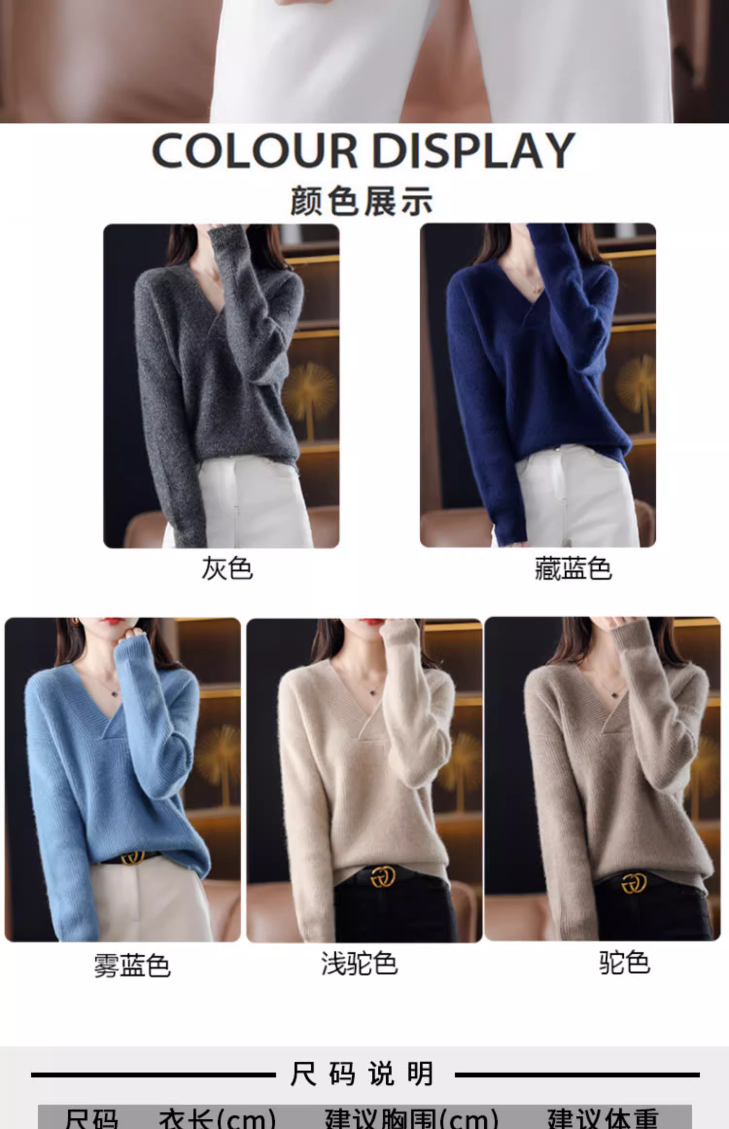 打底衫女2024新款春秋羊绒衫V领宽松显瘦洋气毛衣针织内搭羊毛衫