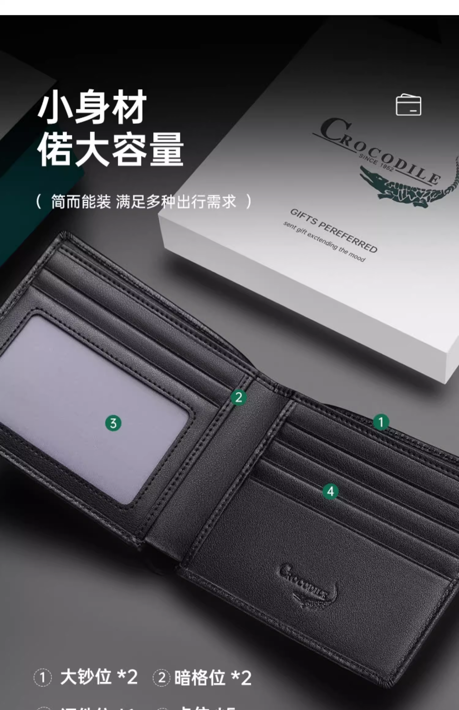 鱷魚正品男款真皮皮夾2025年新款牛皮短版男錢夾送男友情人節禮物