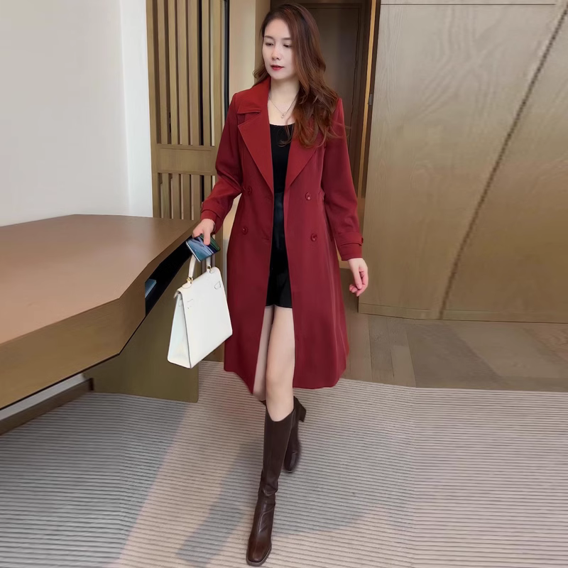 风衣外套女中长款2023秋冬新款时尚气质显瘦双排扣西装领流行大衣