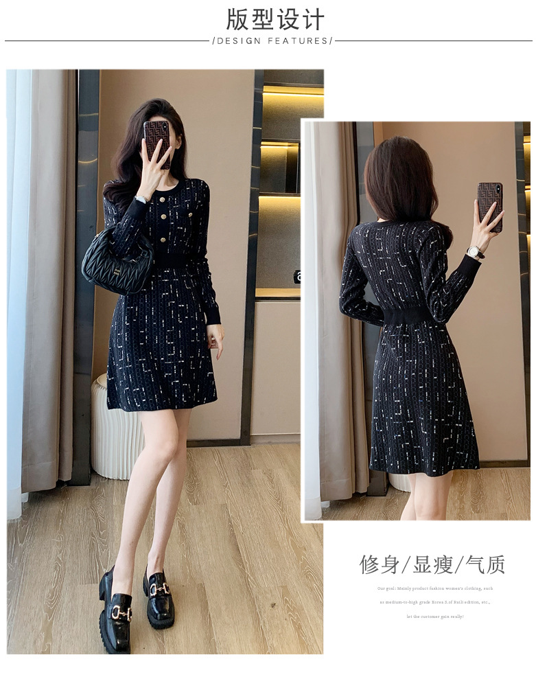 黑色针织连衣裙新款女装春秋高级感小香风显瘦衣服毛衣裙子冬