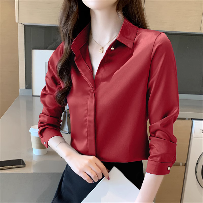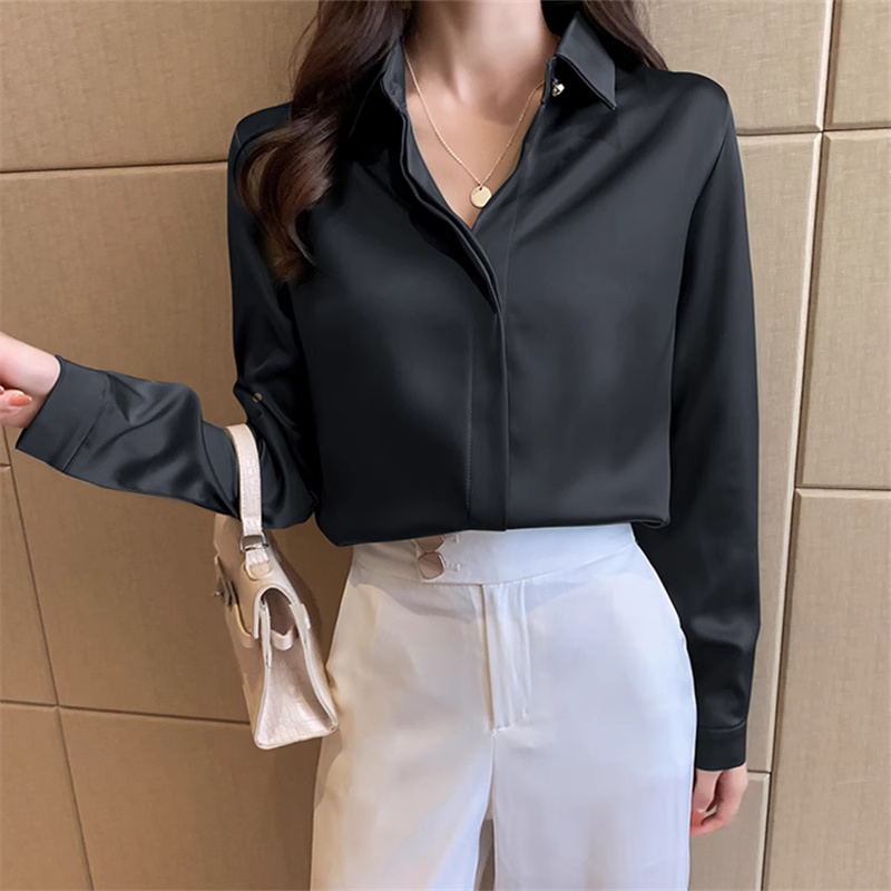 春夏垂感职业白衬衫女长袖通勤抗皱高档柔缎面面试工装衬衣设计感
