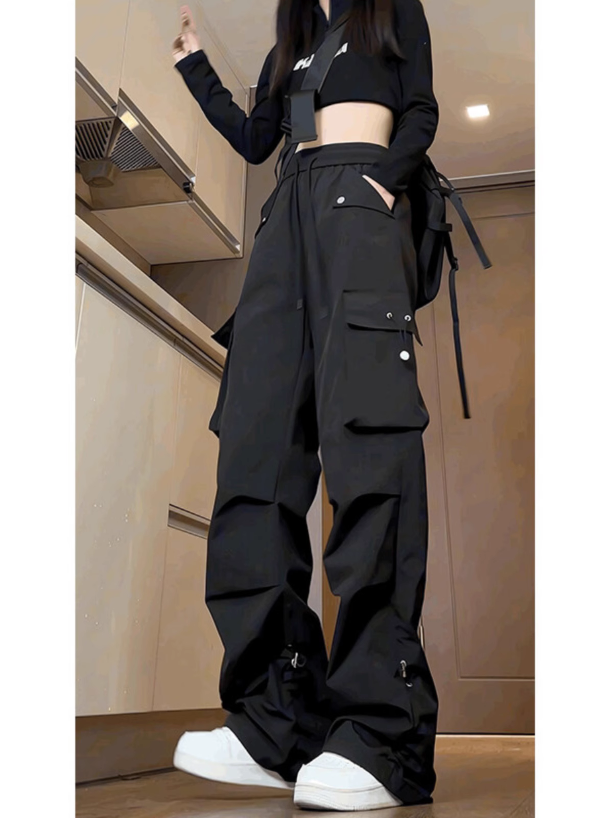 黑色工装裤女2025新款小个子春秋宽松防风防水登山秋冬大码冲锋裤