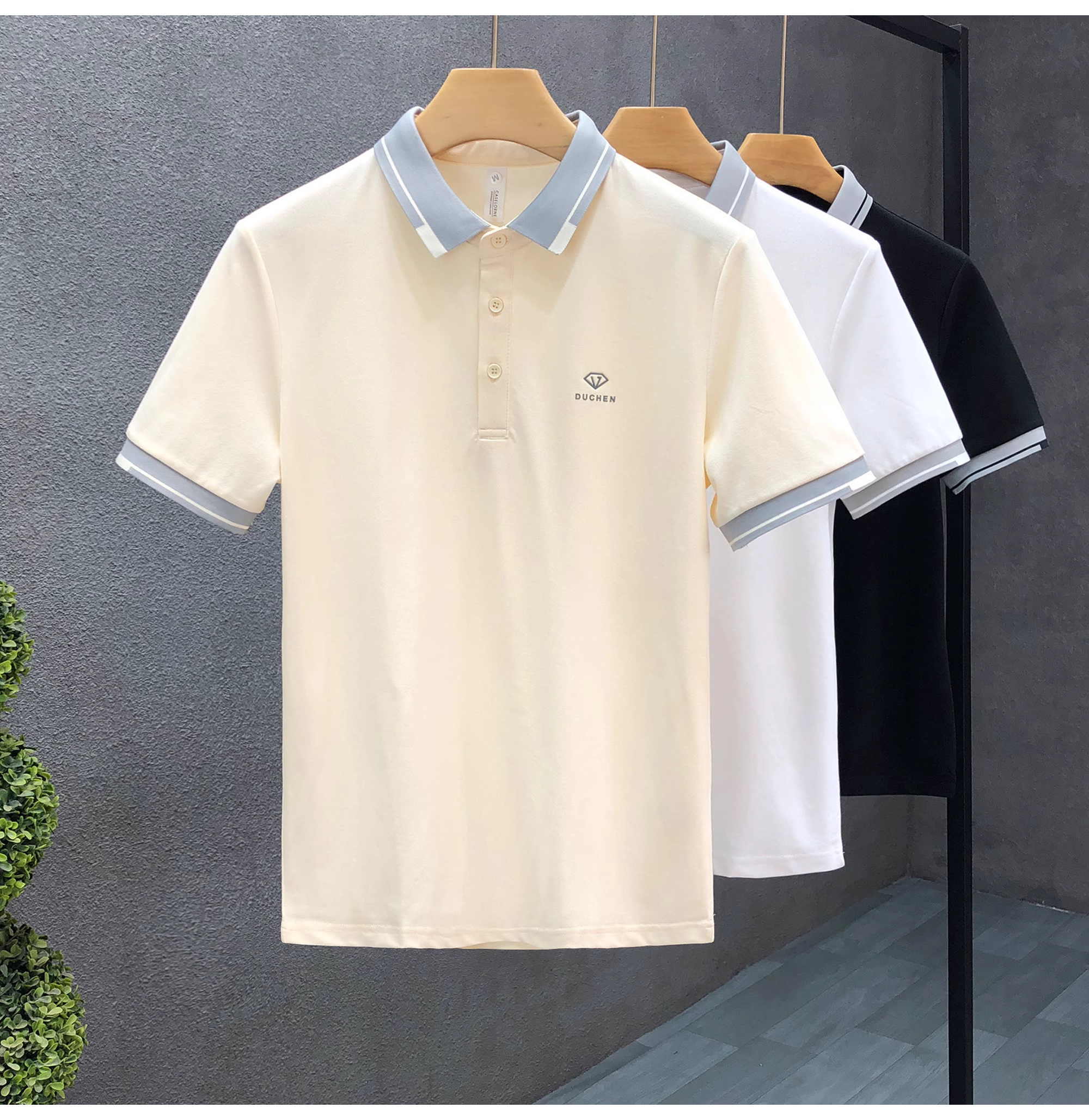 高级感杏色polo衫男款短袖潮牌休闲翻领t恤2024新款男士高端上衣