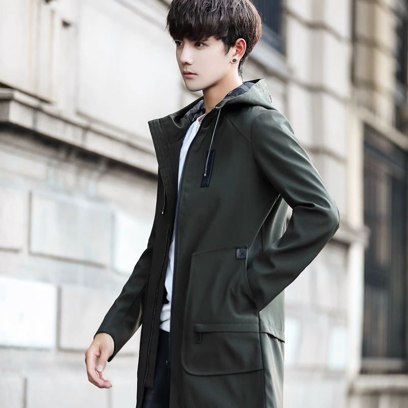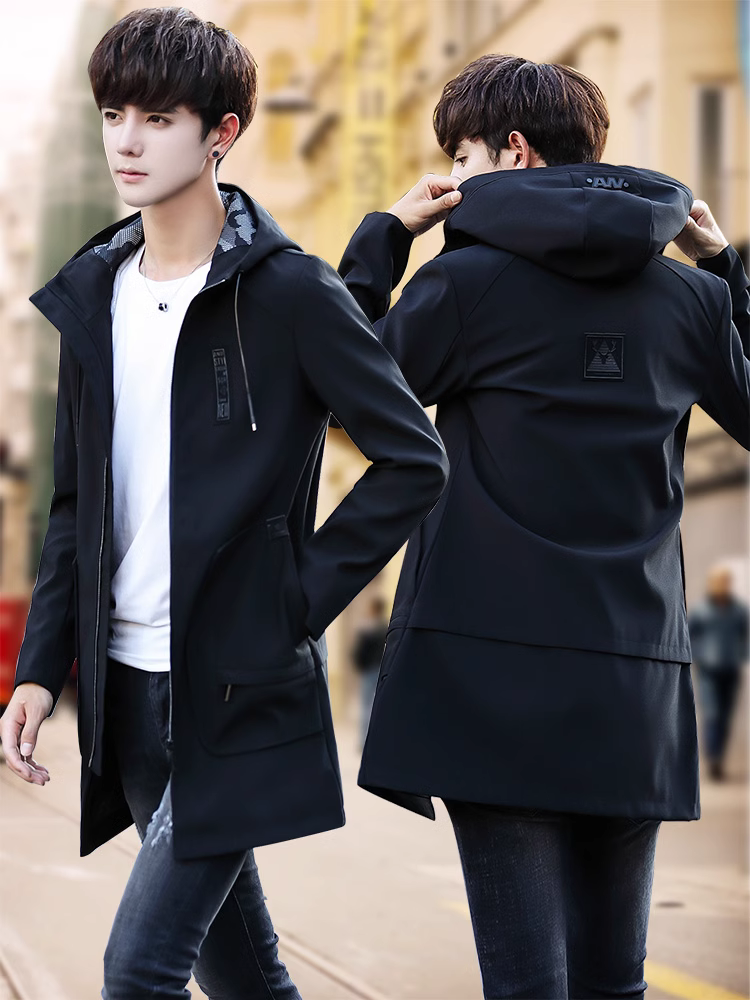 男士外套韩版潮流春秋季2024新款加绒中长风衣修身上衣服秋冬夹克